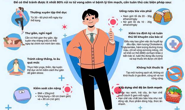 Giảm thiểu rủi ro: Giúp phòng tránh các yếu tố nguy cơ gây bệnh tim mạch như hút thuốc lá, lạm dụng rượu bia, ít vận động và chế độ ăn uống không lành mạnh.