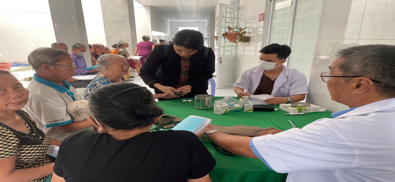 Tại đây có 65 người cao tuổi được các y, bác sĩ khám tổng quát như: đo huyết áp, xét nghiệm đường huyết, siêu âm, đo điện tim và cấp phát thuốc; đồng thời tư vấn chế độ dinh dưỡng, hướng dẫn luyện tập và chăm sóc sức khỏe cho từng nhóm tuổi, nhằm cải thiện và nâng cao chất lượng cuộc sống cho người cao tuổi.